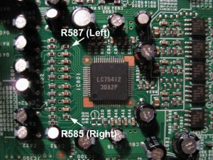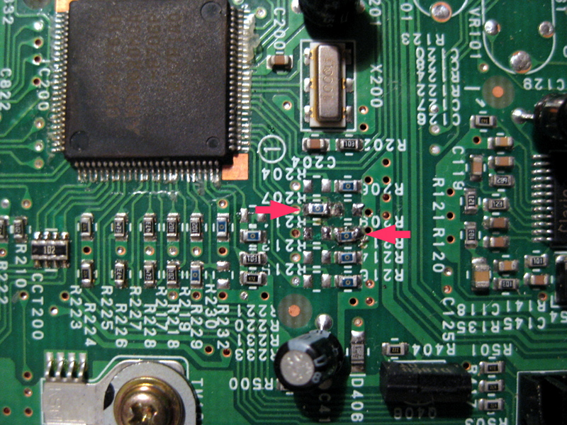 On the front right-hand side of the main PCB are a series of 0 Ohm resistors. Move R209 and R211 to R207 and R212 respectively as shown in the photo below.